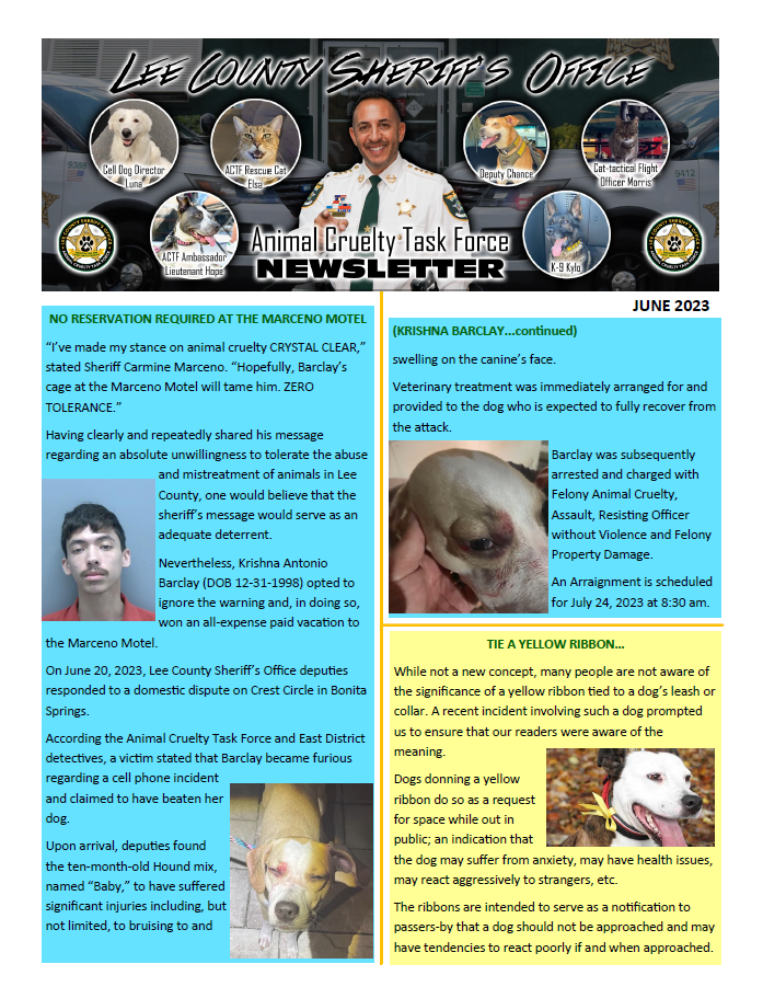 LEE COUNTY SHERIFF’S OFFICE ANIMAL CRUELTY TASK FORCE NEWSLETTER: JUNE 2023